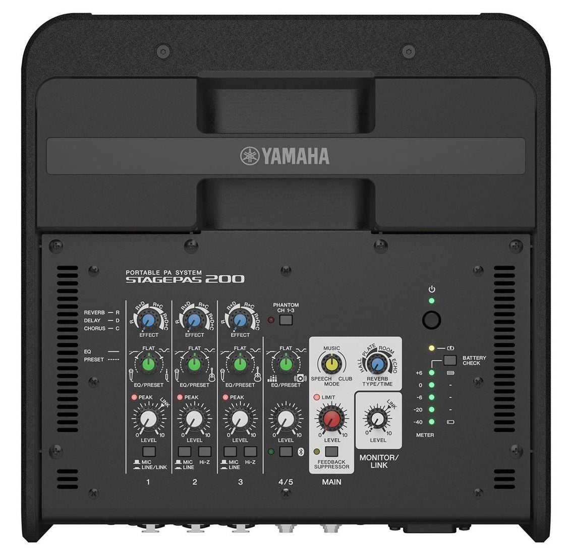 The Yamaha Stagepas 200 BTR is a compact active speaker with built-in, 5-channel digital mixer. This is the battery-powered version.
