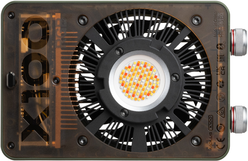 The Molus X100 RGB LED is an ultra-compact and lightweight light, just 3 cm thick and 384 g, designed for creators on the move. Despite its size, it delivers a powerful 12,600 lux output, equivalent to 300 W of power when paired with the ultra-thin Mini Lens Reflector.
