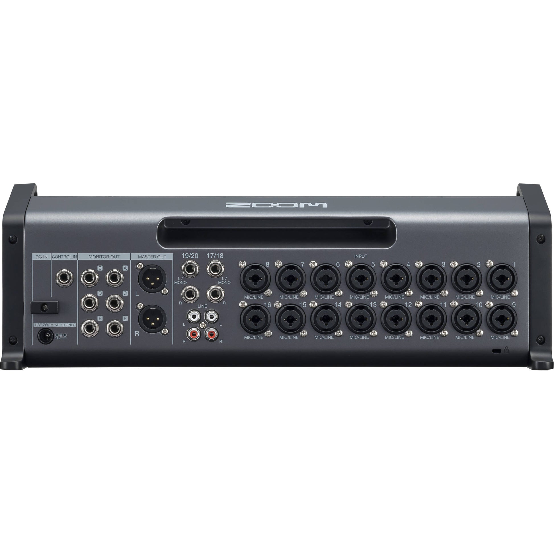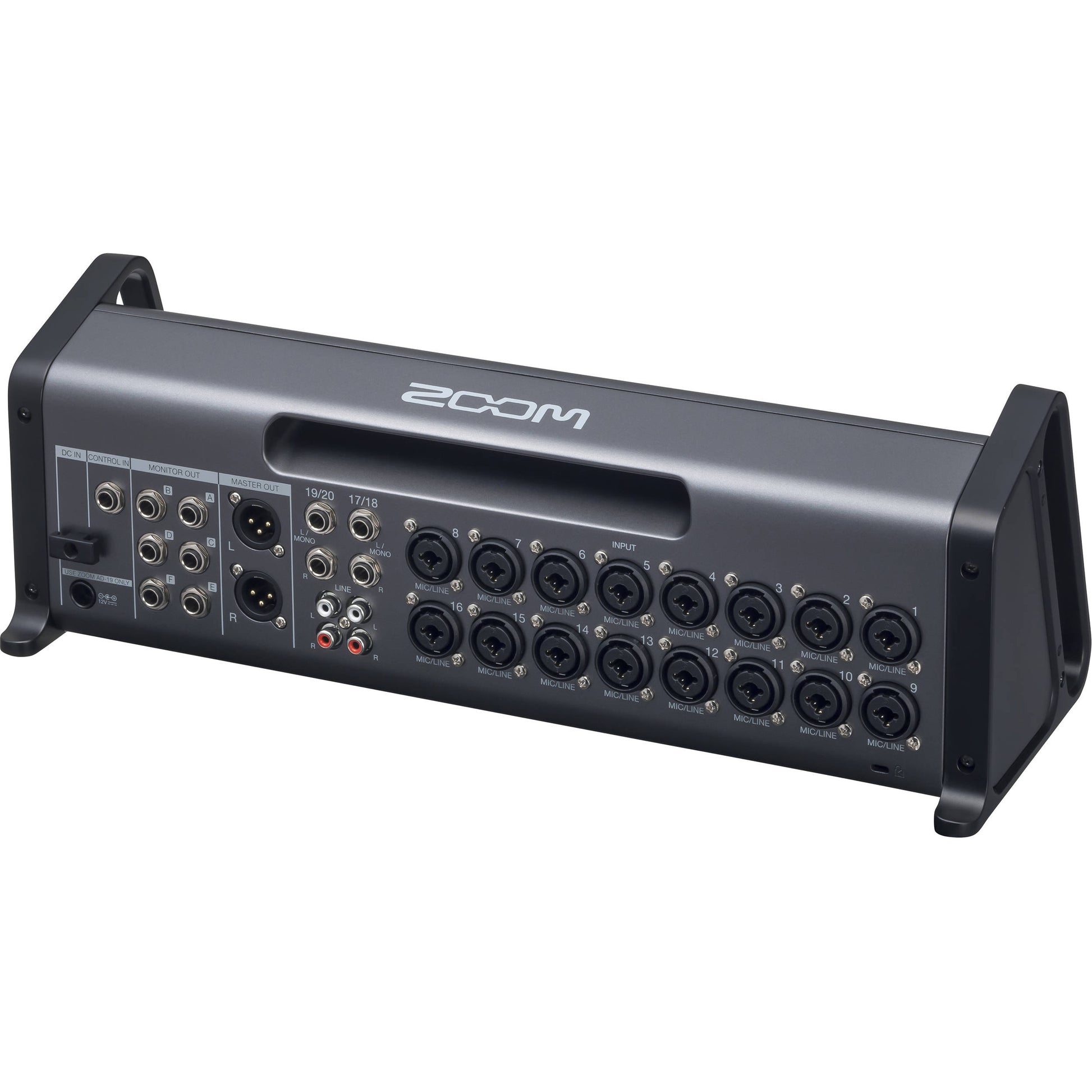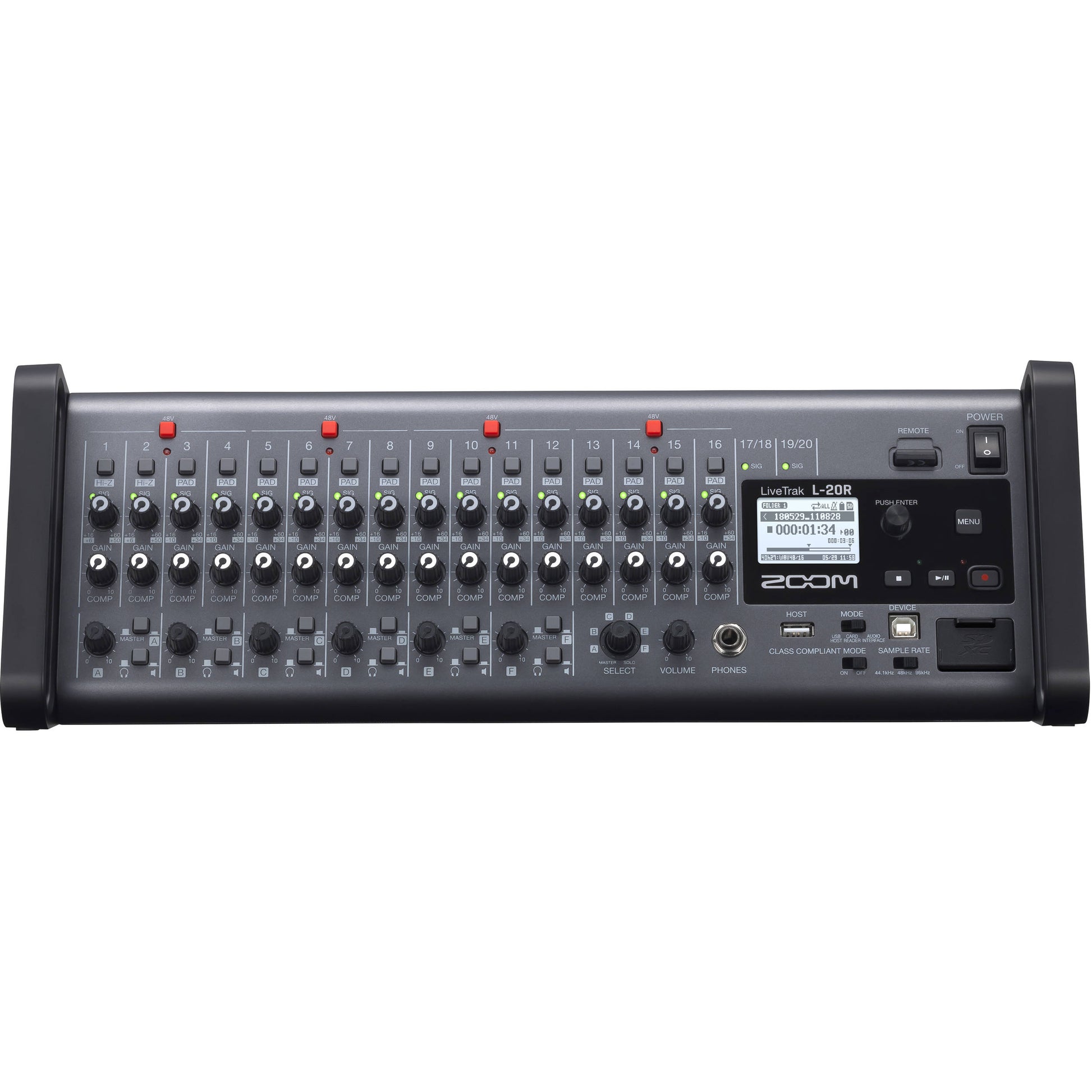 The highly flexible Zoom LiveTrak L-20R is a 20-input digital mixer and multi-track recorder well suited for live performances, studio recording, band rehearsals, podcasts, and more. Eschewing the faders of the similar L-20 without sacrificing much else, the L-20R is both portable and rack-mountable, even supplying rack ears for mounting the mixer in your rack case. Also, the L-20R sports iPad control. The FOH engineer and up to six musicians can control their own discrete monitor mix over iPads, changing levels, EQ, channel effects, and more.